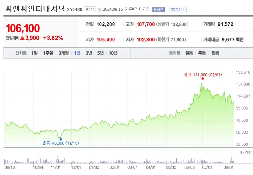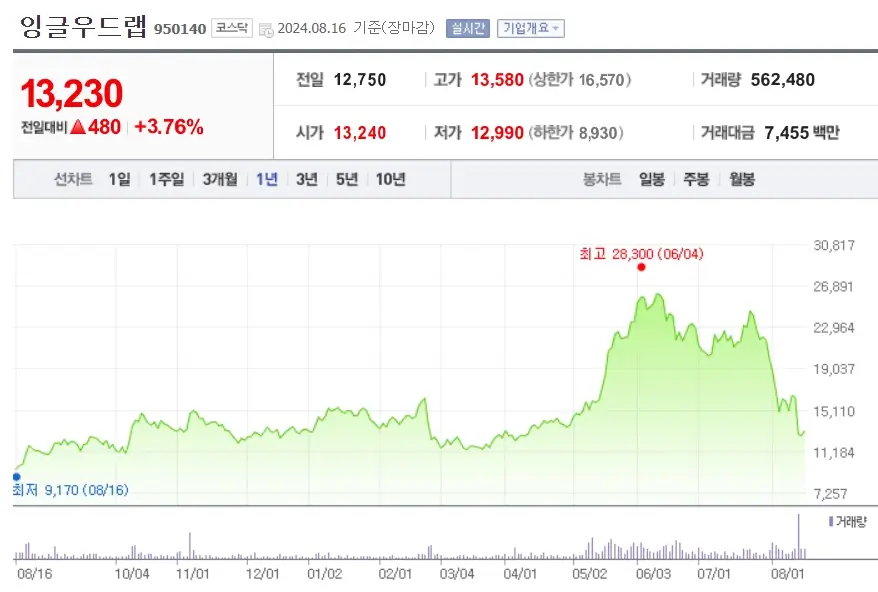 | 웹툰엔터 주가 38% 급락ㅣ네이버웹툰 어닝미스 기술적분석 240810 (2) | 2024.08.10 |